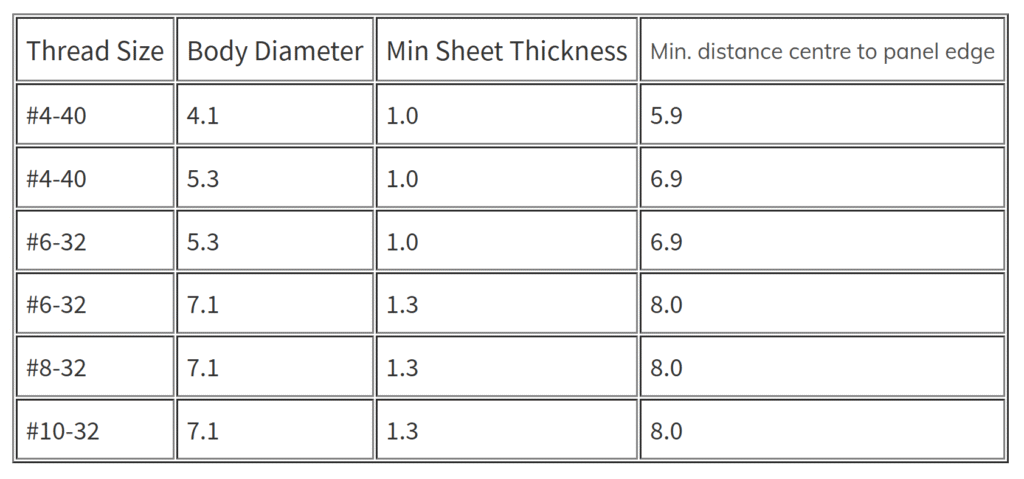 Through hole clinch standoffs provide a permanent captive UNIFIED threaded spacer in thin metal materials. On installation using a press, the thin hexagon head becomes embedded in the parent material leaving it flush on the reverse side. The C – SOS range are made of 300 series stainless steel and can be installed in material of up to 70 HRB hardness.