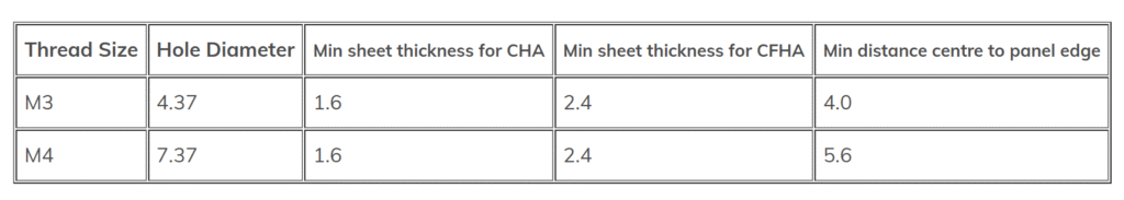 Two types are listed below – CHA for 1.6mm minimum sheet thickness and CFHA for 2.4mm minimum sheet thickness.
