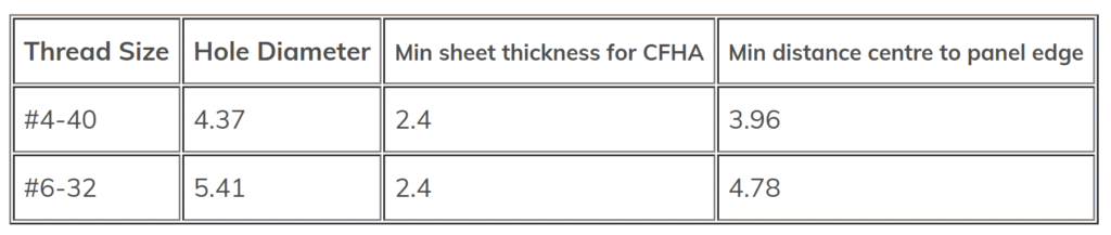 Two types are listed below – CHA for 1.6mm minimum sheet thickness and CFHA for 2.4mm minimum sheet thickness.