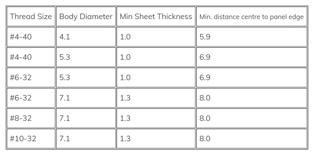 Blind hole clinch standoffs provide a permanent captive threaded spacer in thin metal materials. The C – BSO4 range are made of 400 series extra hard stainless steel and are recommended for use if the parent material is stainless steel, as they can be installed in material of up to 88 HRB hardness. 400 series Martensitic stainless has a higher carbon content and also has magnetic properties.