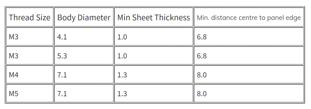 Through hole clinch standoffs provide a permanent captive threaded spacer in thin metal materials. The C – SO4 range are made of 400 series extra hard stainless steel and are recommended for use if the parent material is stainless steel, as they can be installed in material of up to 88 HRB hardness. 400 series Martensitic stainless has a higher carbon content and also has magnetic properties.