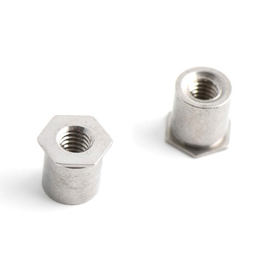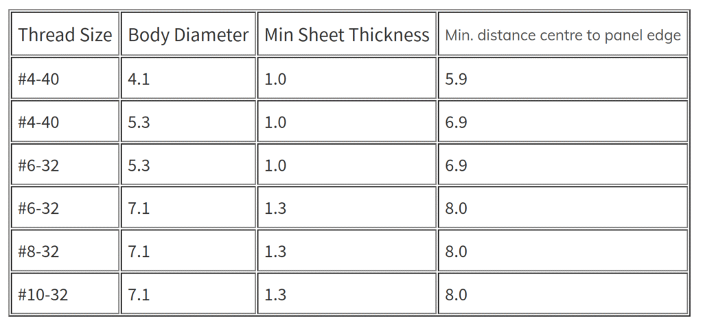 Through hole clinch standoffs provide a permanent captive threaded spacer in thin metal materials. The C – SO4 range are made of 400 series extra hard stainless steel and are recommended for use if the parent material is stainless steel, as they can be installed in material of up to 88 HRB hardness. 400 series Martensitic stainless has a higher carbon content and also has magnetic properties.