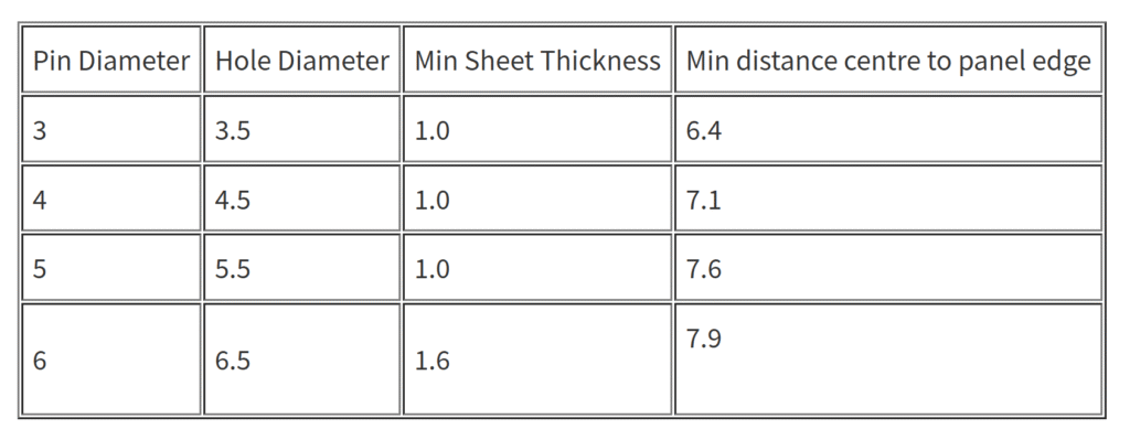 Clinch pilot pins have a chamfered end to assist in alignment of the mating part.