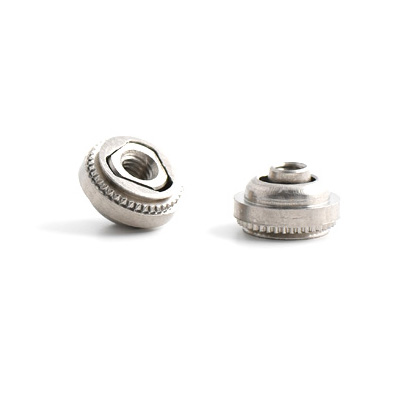 These floating clinch nuts have the same features as regular clinch nuts with the additional benefits of accommodating up to 0.8mm ‘off-centre’ screw alignment and a self-locking thread to help prevent the assembled screw coming loose with vibration.