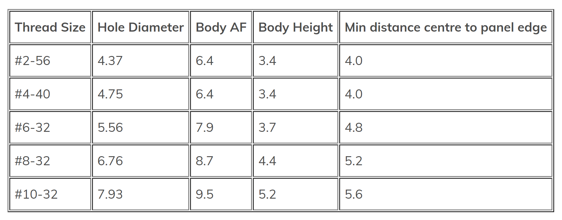 These nuts are made of 300 series stainless steel and are suitable for press installation into material of up to 70HRB hardness.