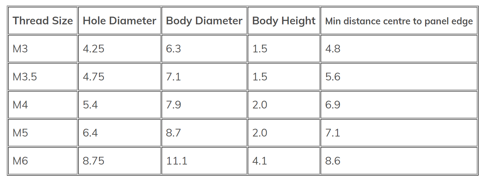 The C – SL series of all metal locking clinch nuts have the same dimensions as regular C – S series clinch nuts with an additional locking feature to help prevent the mating screw thread becoming loose.