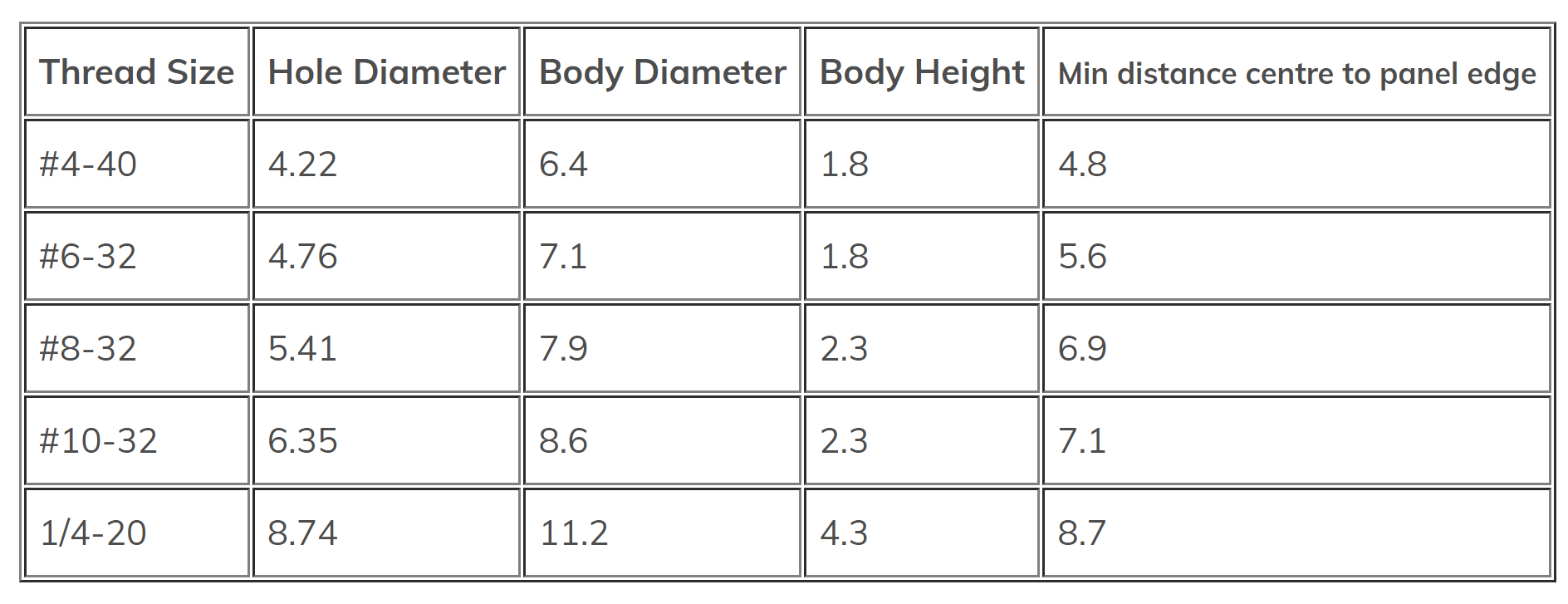 The C – SL series of all metal locking clinch nuts have the same dimensions as regular C – S series clinch nuts with an additional locking feature to help prevent the mating screw thread becoming loose.