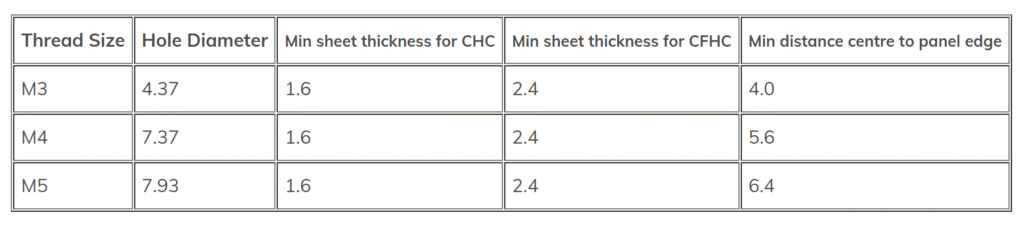 Two types are listed below – CHC for 1.6mm minimum sheet thickness and CFHC for 2.4mm minimum sheet thickness.