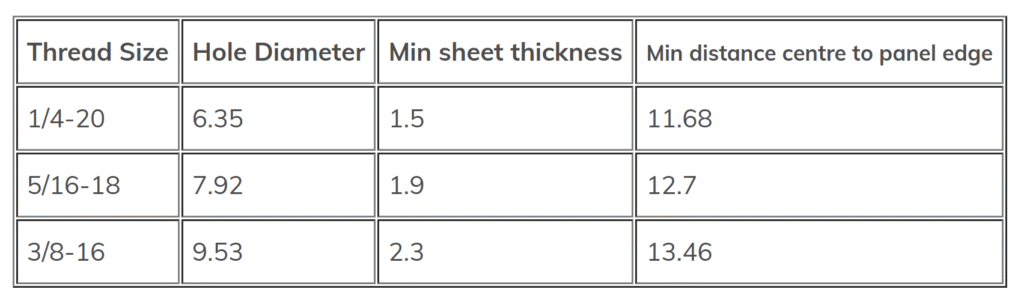 These HEAVY DUTY clinch studs have a larger diameter thicker head which remains partly protruding after installation. This provides greater torque-out and pull-through performance than the standard flush head clinch studs and also the extra 3/8-16 UNC thread size option. The C-HFHS studs are made from 300 series stainless steel and are suitable for press installation into material of up to 70HRB hardness.