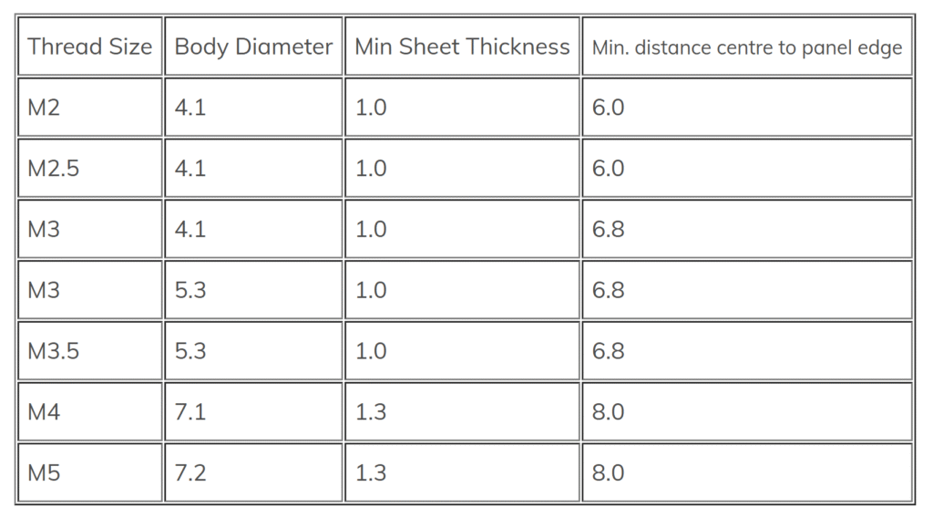 These blind hole clinch standoffs provide a permanent captive threaded spacer in thin metal materials. On installation using a press, the thin hexagon head becomes embedded in the parent material leaving it flush and flat on the reverse side. The C – BSO range are made of hardened steel zinc plated and can be installed in material of up to 80 HRB hardness.
