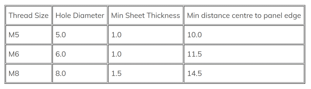 These HEAVY DUTY clinch studs have a larger diameter thicker head which remains partly protruding after installation. This provides greater torque-out and pull-through performance than the standard flush head clinch studs and can be installed into sheets as thin as 1.0mm. The C-HFE studs are made from hardened steel zinc plated and are suitable for press installation into material of up to 80HRB hardness.